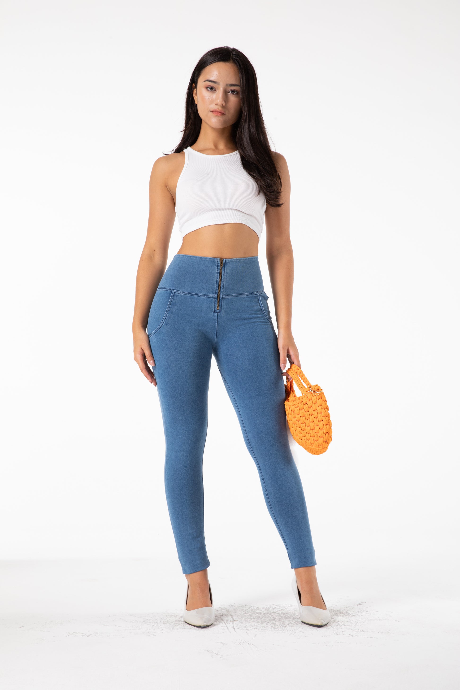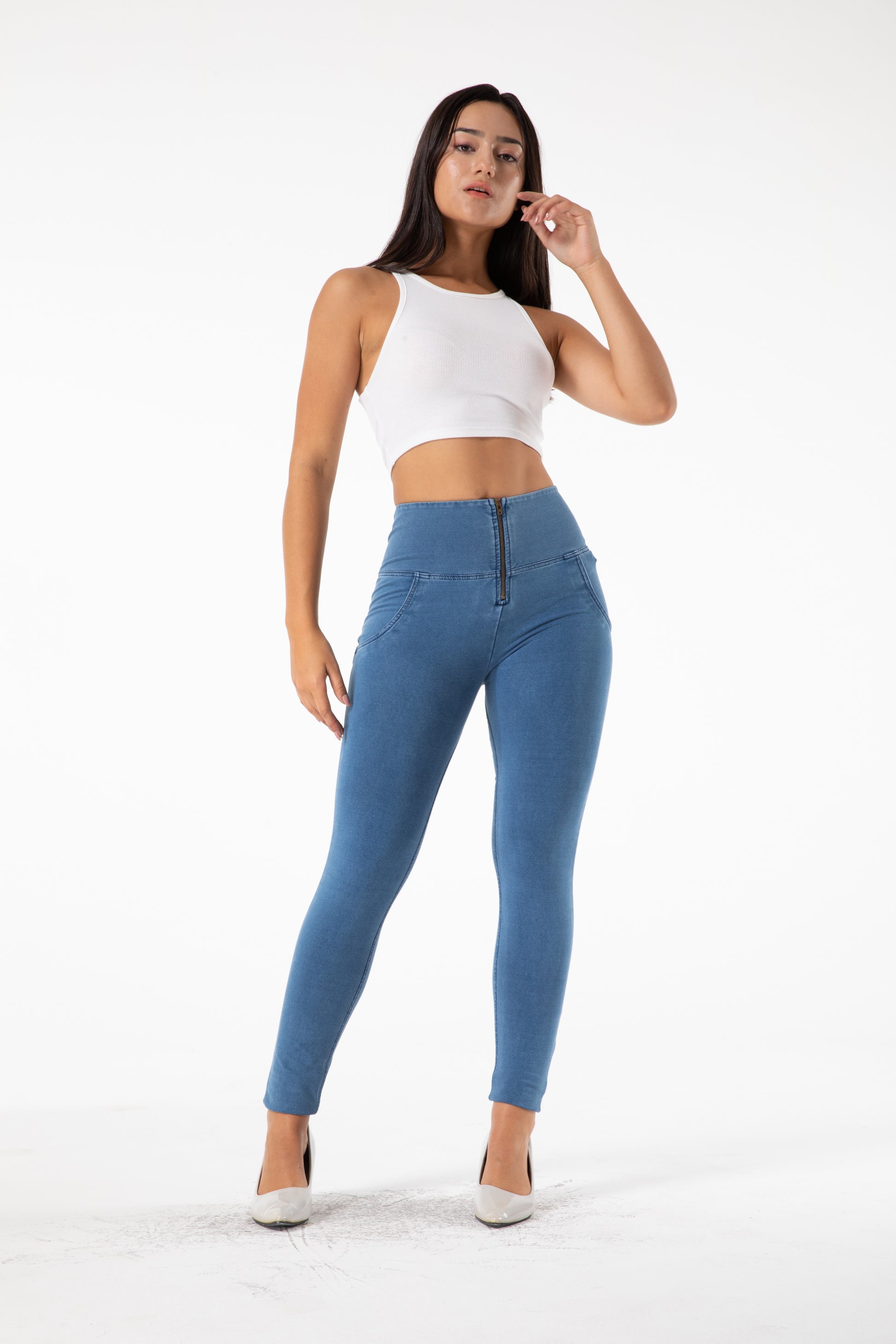 Turn heads with our chic high-waist slim fit denim pants, crafted to flatter your silhouette while offering all-day comfort. Designed with a sleek front-zip closure and a perfect body-hugging stretch, these pants are the ultimate wardrobe essential — from casual day-outs to stylish night looks.